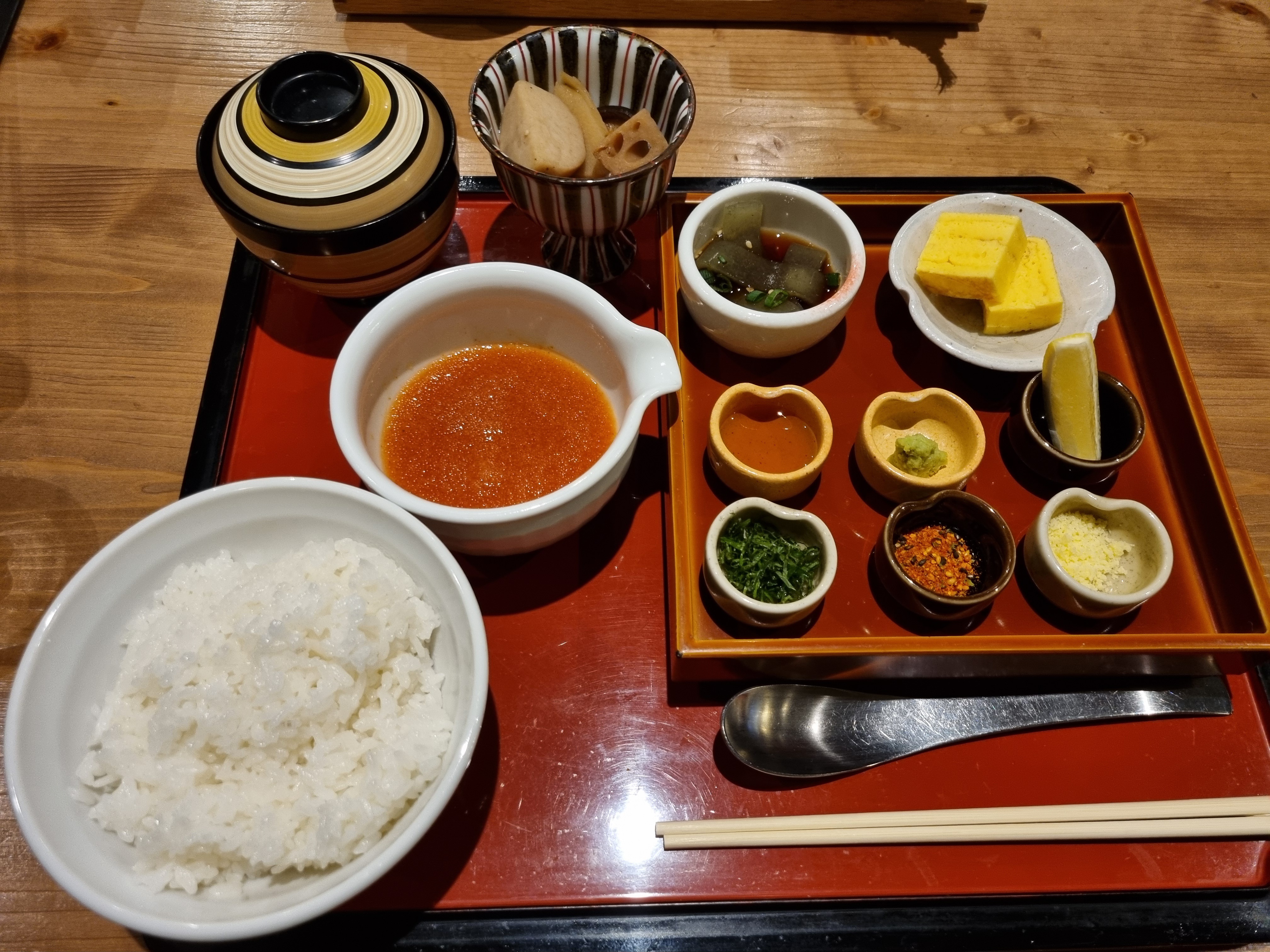 전날 축구 보고 늦게 자서 늦게 일어나서 아점 먹으러 명란젓 정식 파는 식당에 왔습니다. 여기 식당이 점심 정식이 있는데 1000엔에 밥이랑 명란젓이 무한리필이었습니다. 밥도둑과 밥이 무한리필이니까 거의 무한동력이더군요. 엄청 맛있게 많이 먹었습니다.